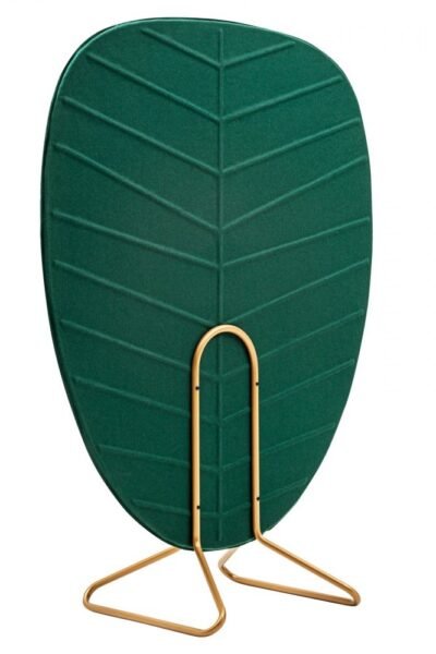 Akoestisch blad, geïnspireerd door bladeren in de natuur, staand op een gepoedercoat stalen frame of gepositioneerd aan de muur. Word veel gebruikt als scheidings wand geeft een
